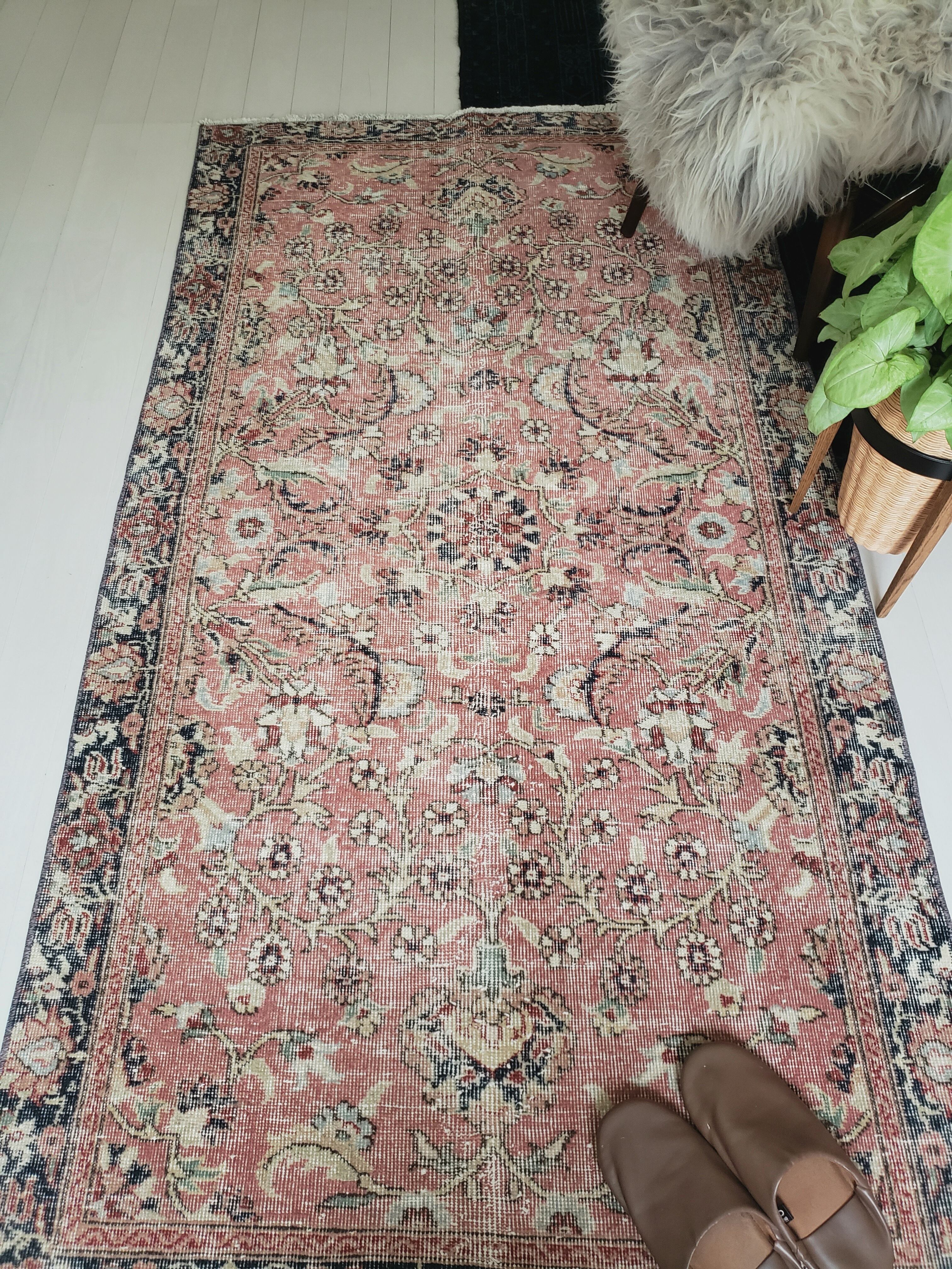 Turkish rug - シャビーred/pink ヴィンテージラグ トルコ絨毯 vintage turkish rug