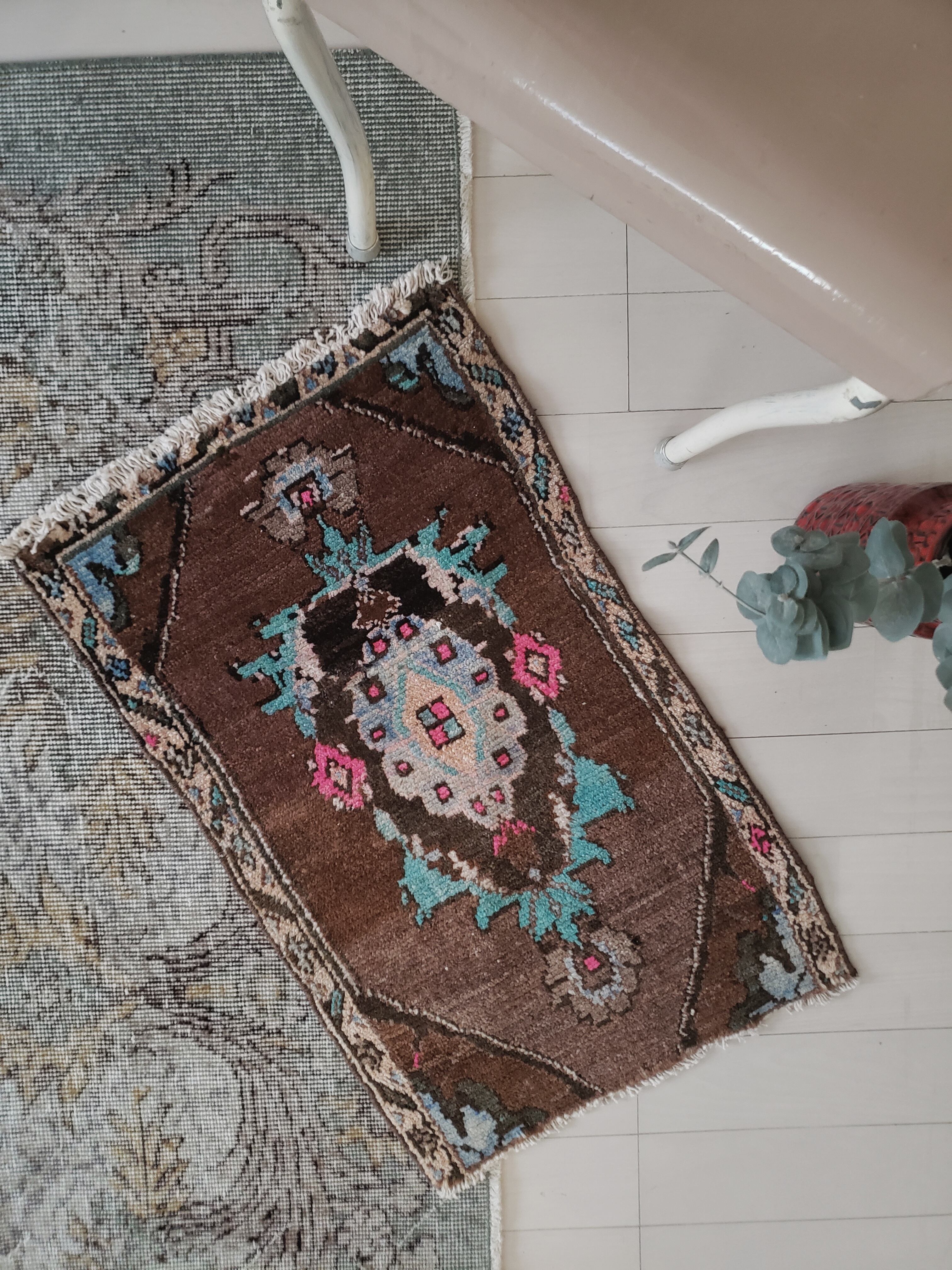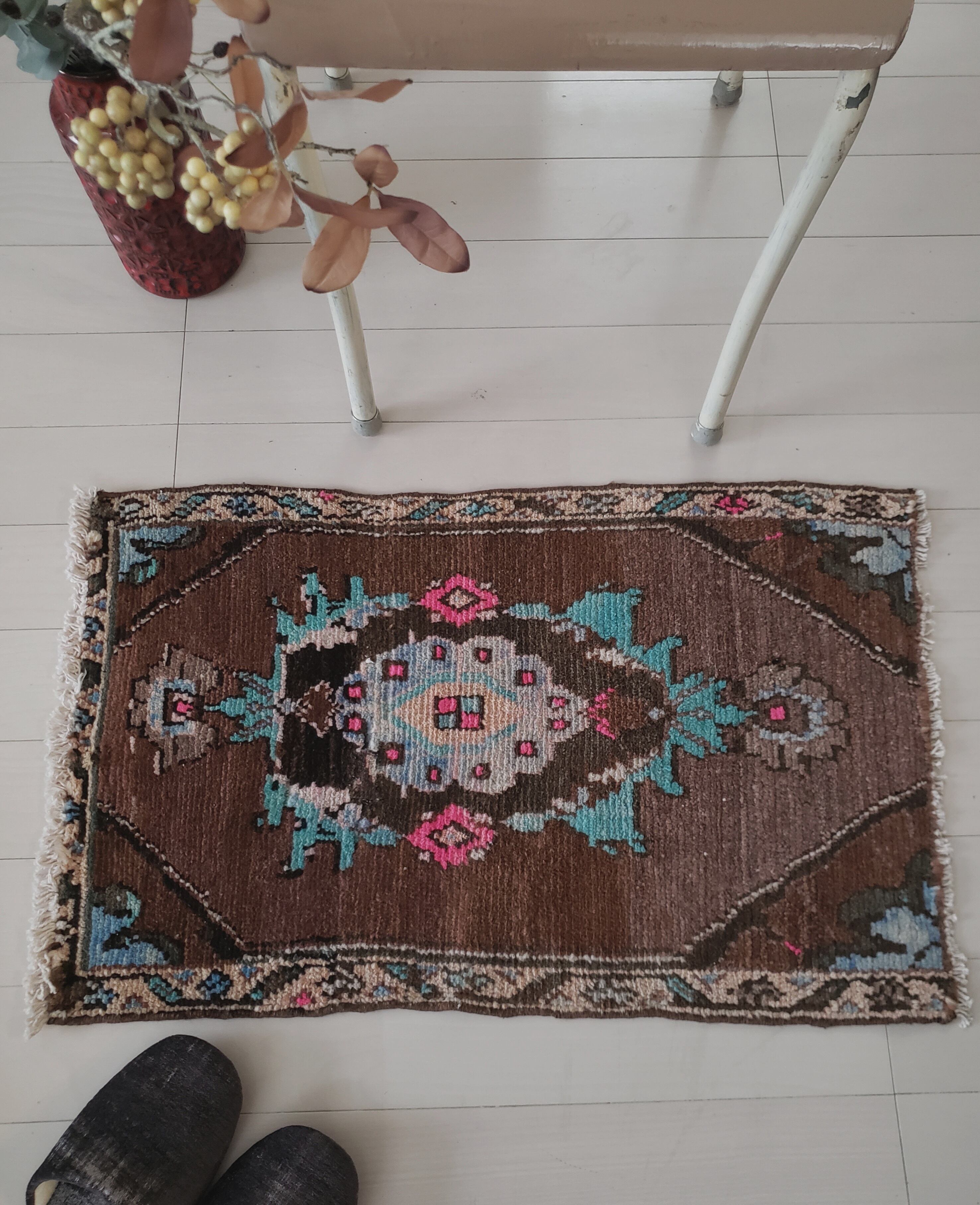 Turkish rug - いびつが愛嬌♪ミニラグ ヴィンテージラグ トルコ絨毯