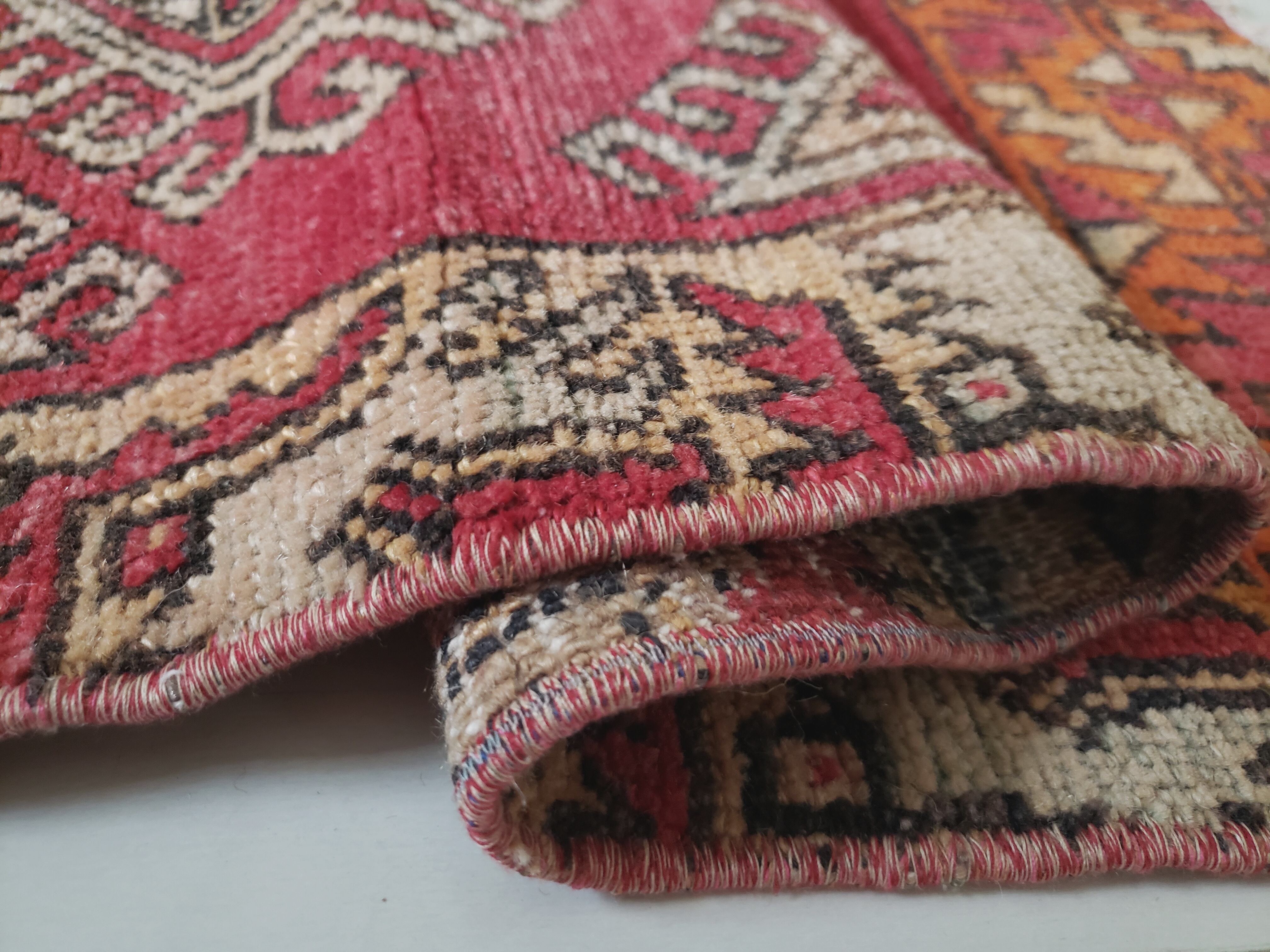 Turkish rug - 幾何学red ヴィンテージラグ トルコ絨毯