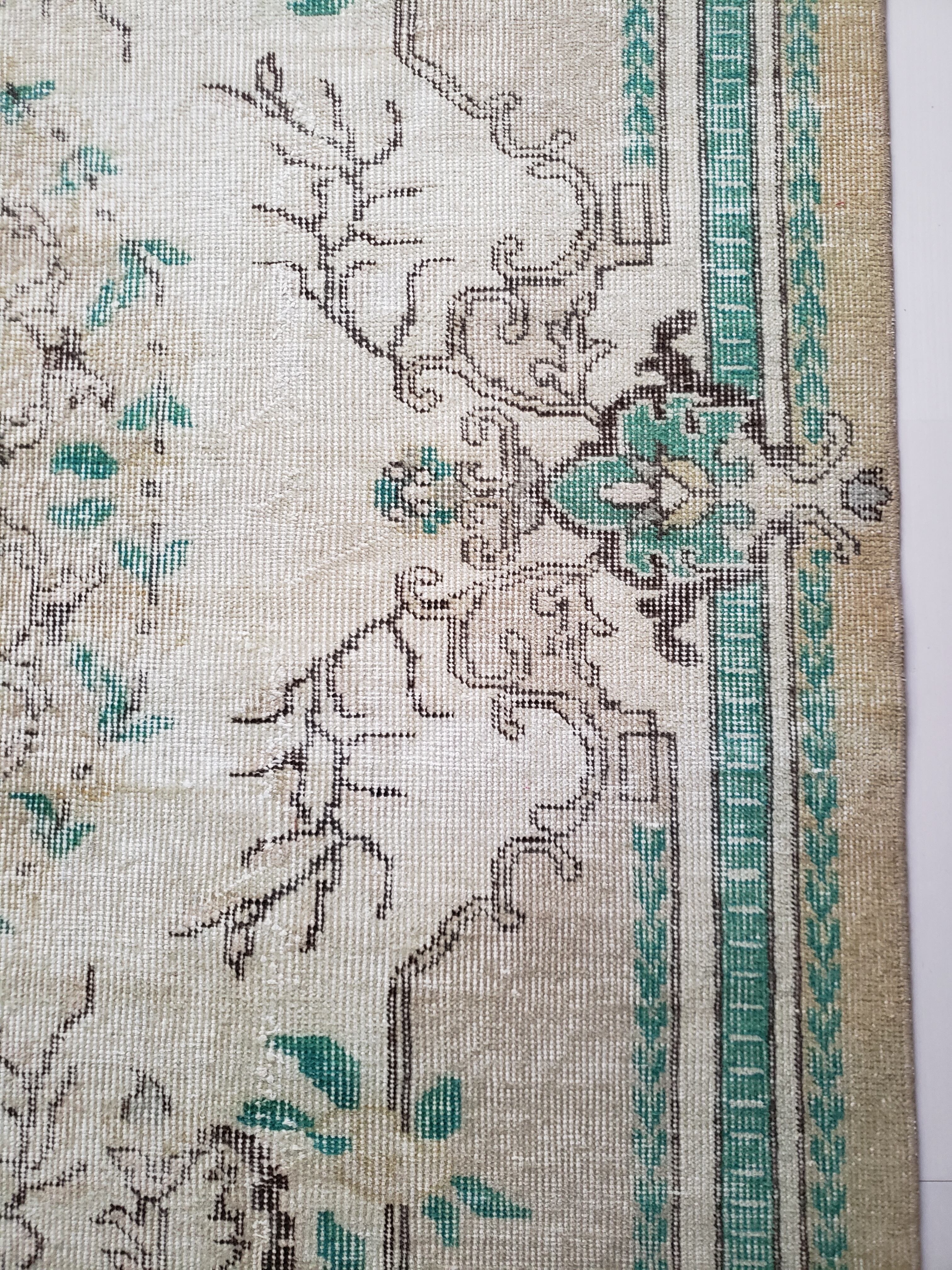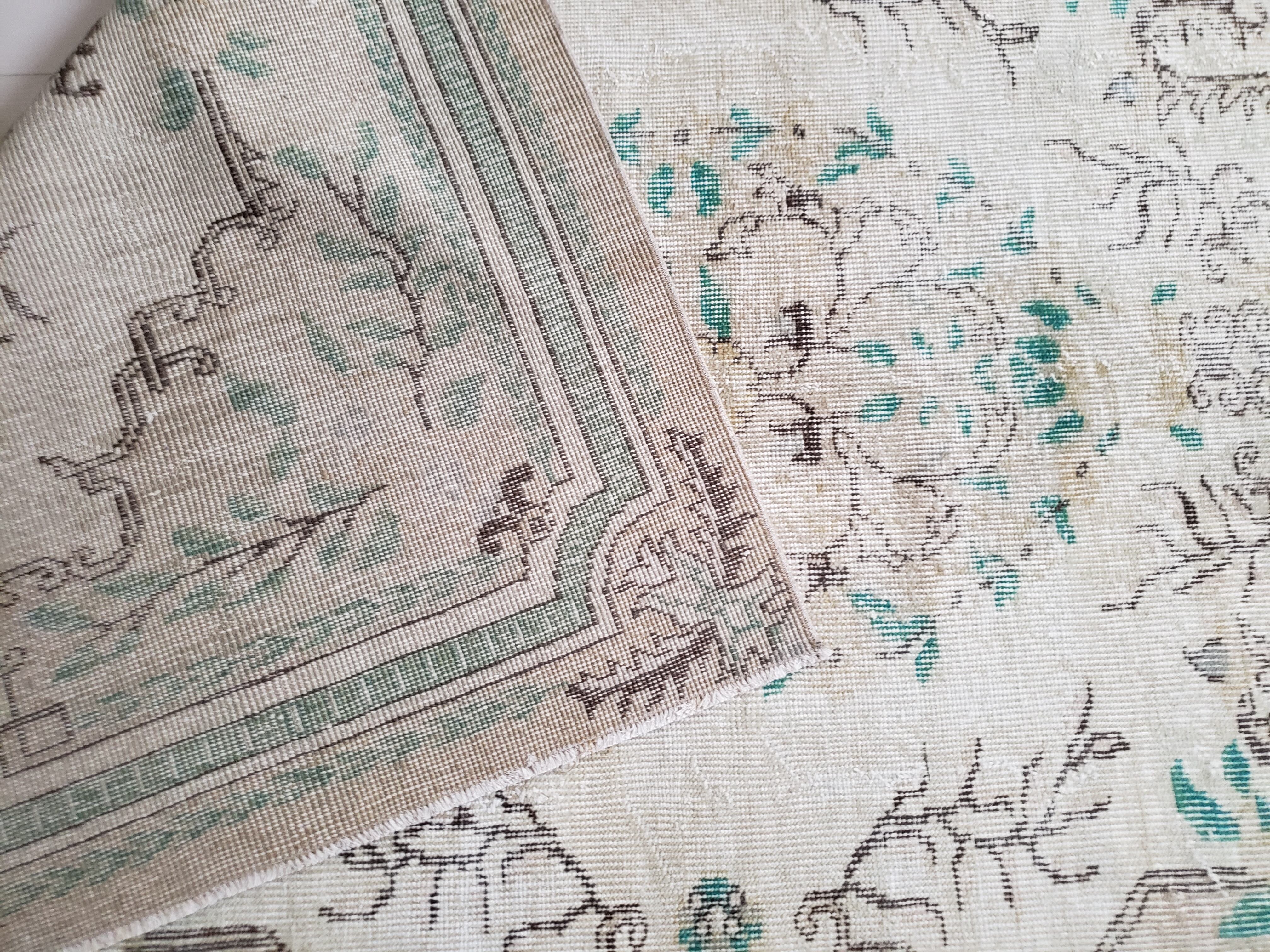 (大判)Turkish rug - くすみグリーン×ターコイズ ヴィンテージラグ トルコ絨毯