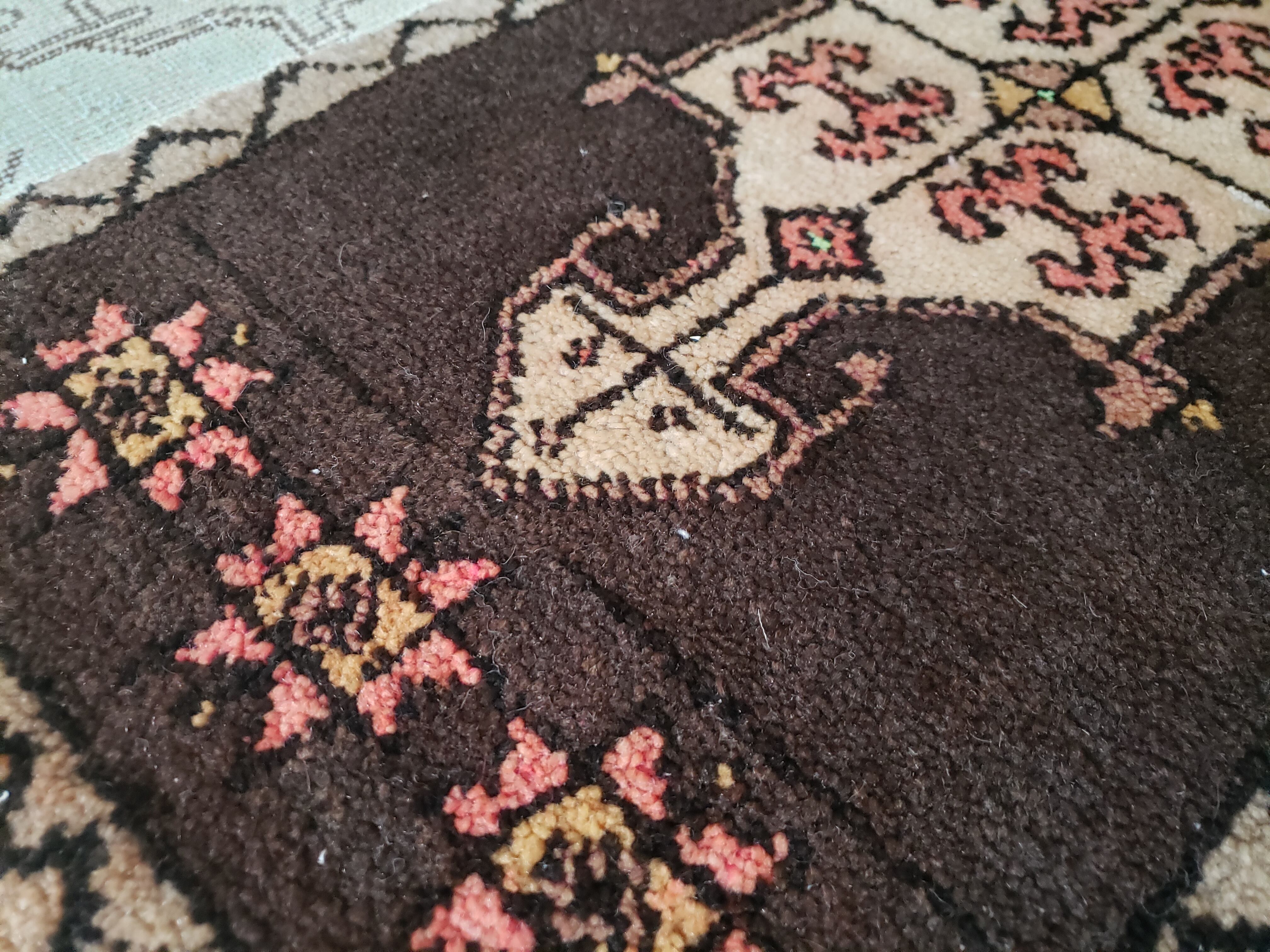 Turkish rug - モコモコdark brown ヴィンテージラグ トルコ絨毯