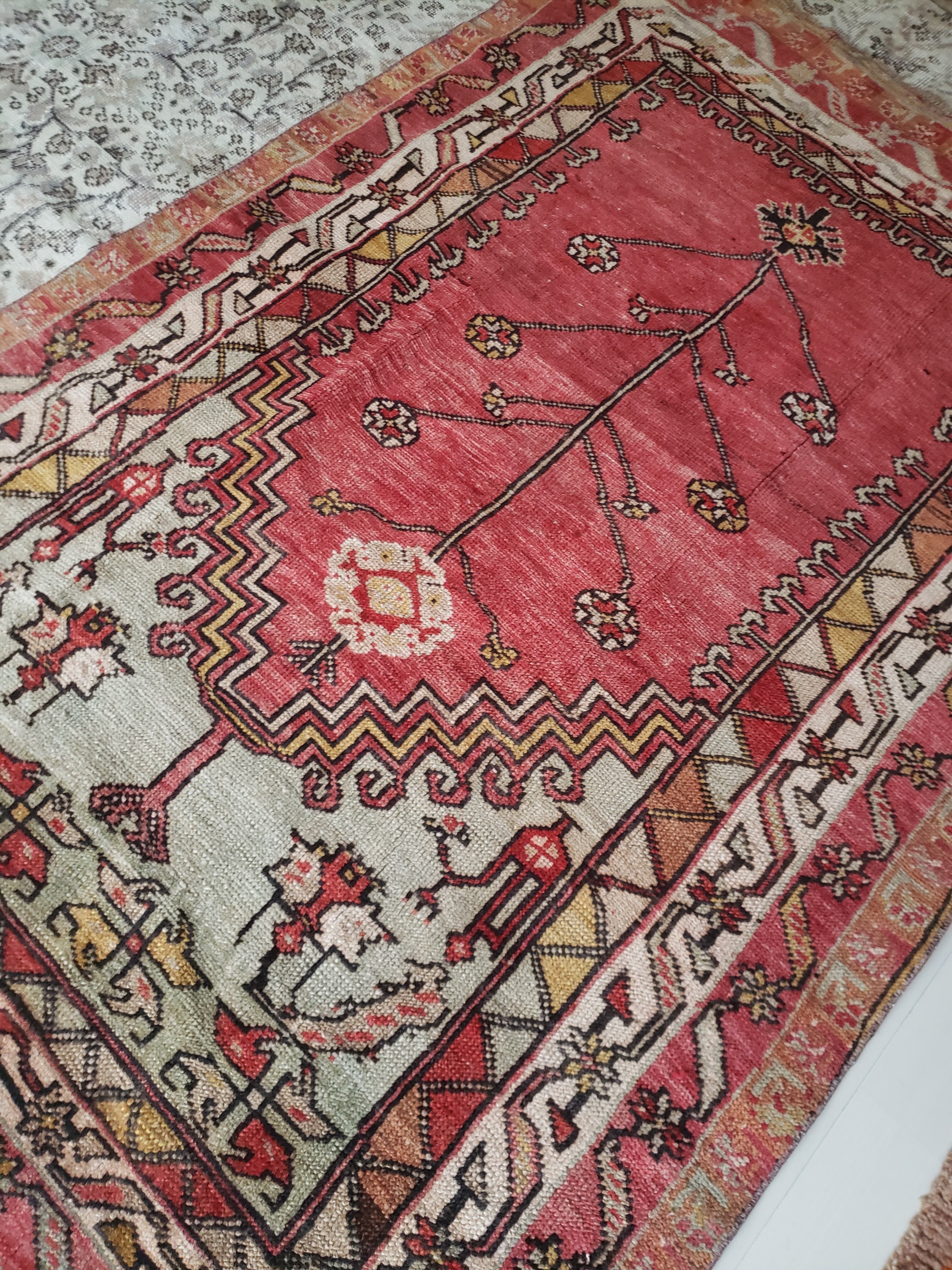 Turkish rug - Cute flower tree ヴィンテージラグ トルコラグ