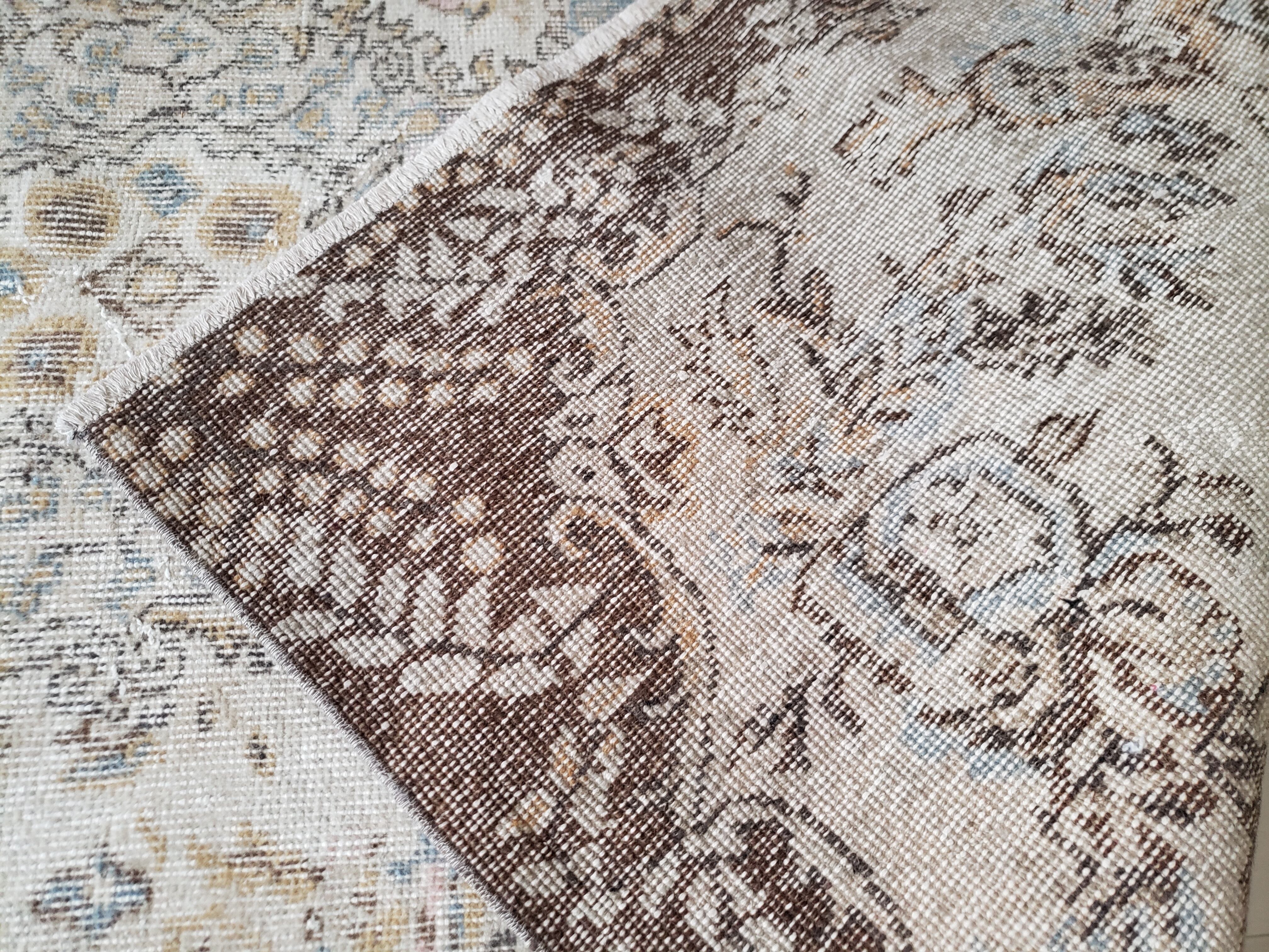 (大判)Turkish rug - 可憐なBeige blue ヴィンテージラグ トルコラグ ビンテージラグ