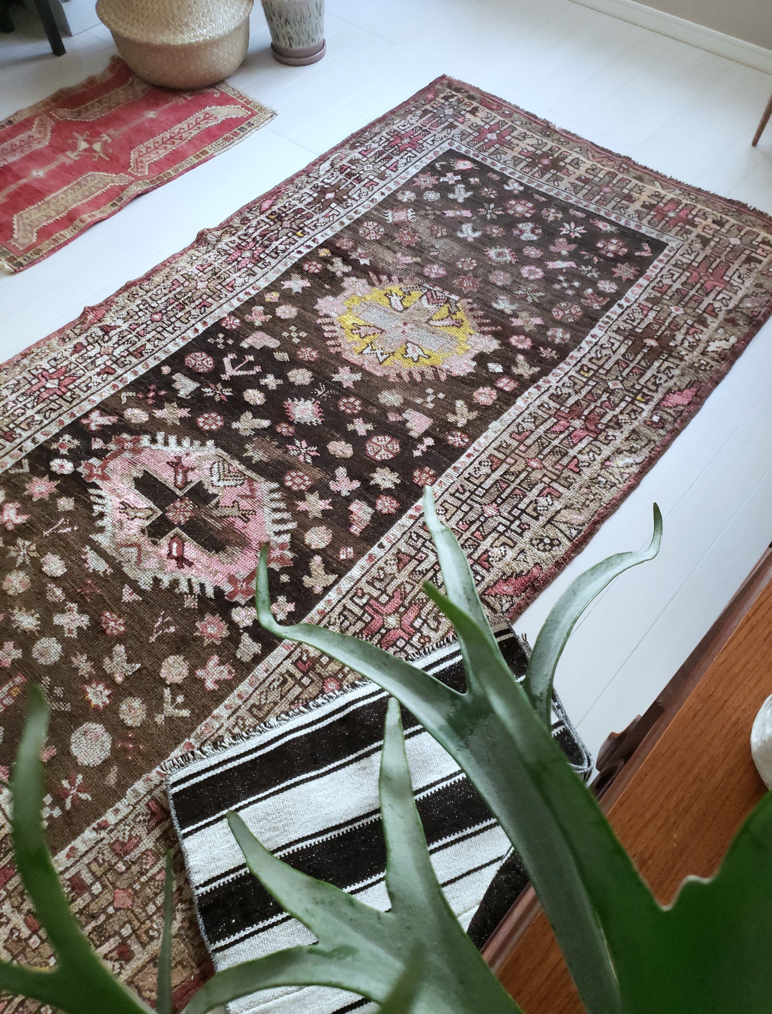 (大判)Turkish rug - いびつちゃん♪ brown pink ヴィンテージラグ トルコラグ