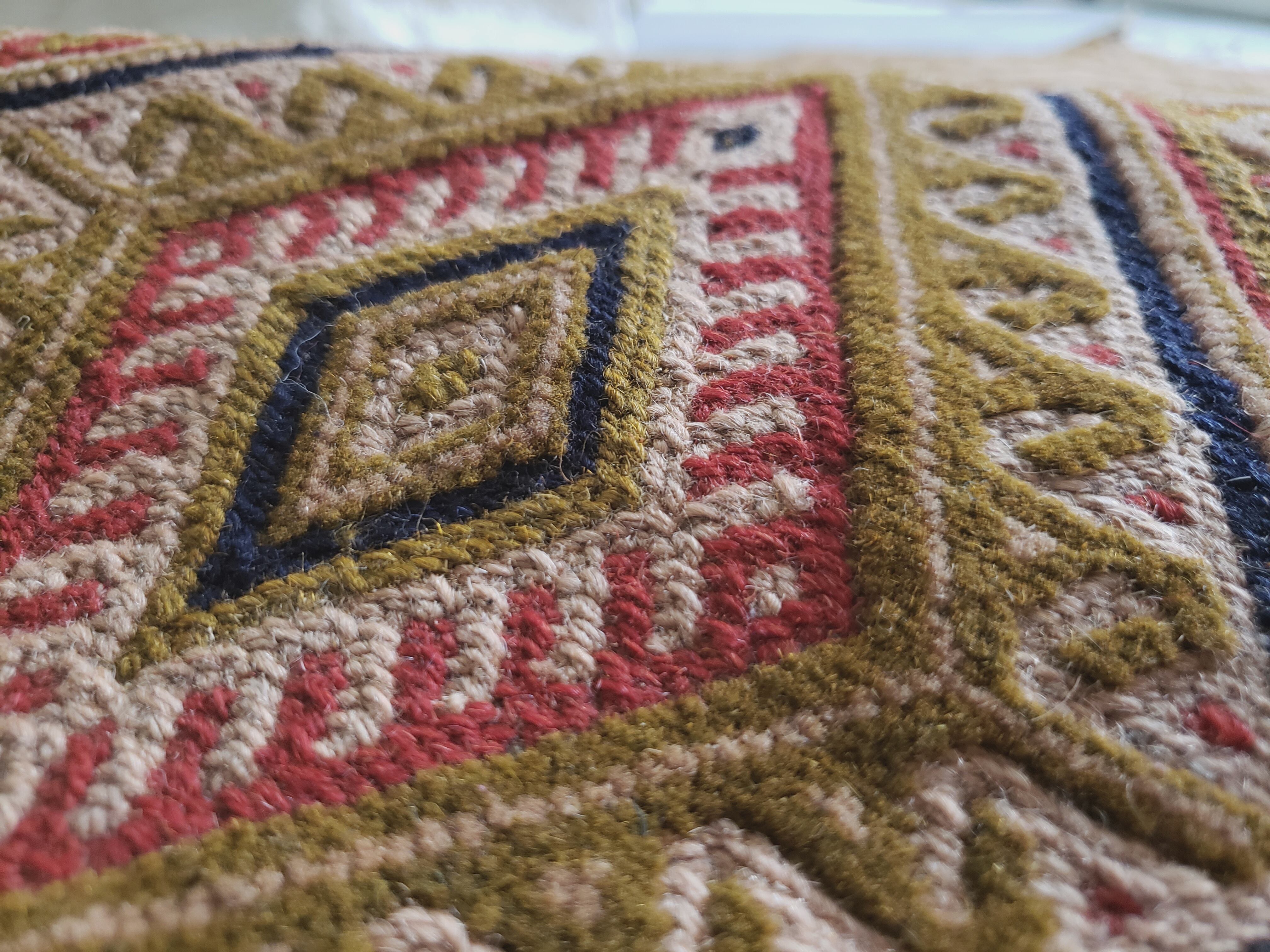 一般的な平織り、そして肌触りのよいパイルの絨毯部分をミックスさせたラグ