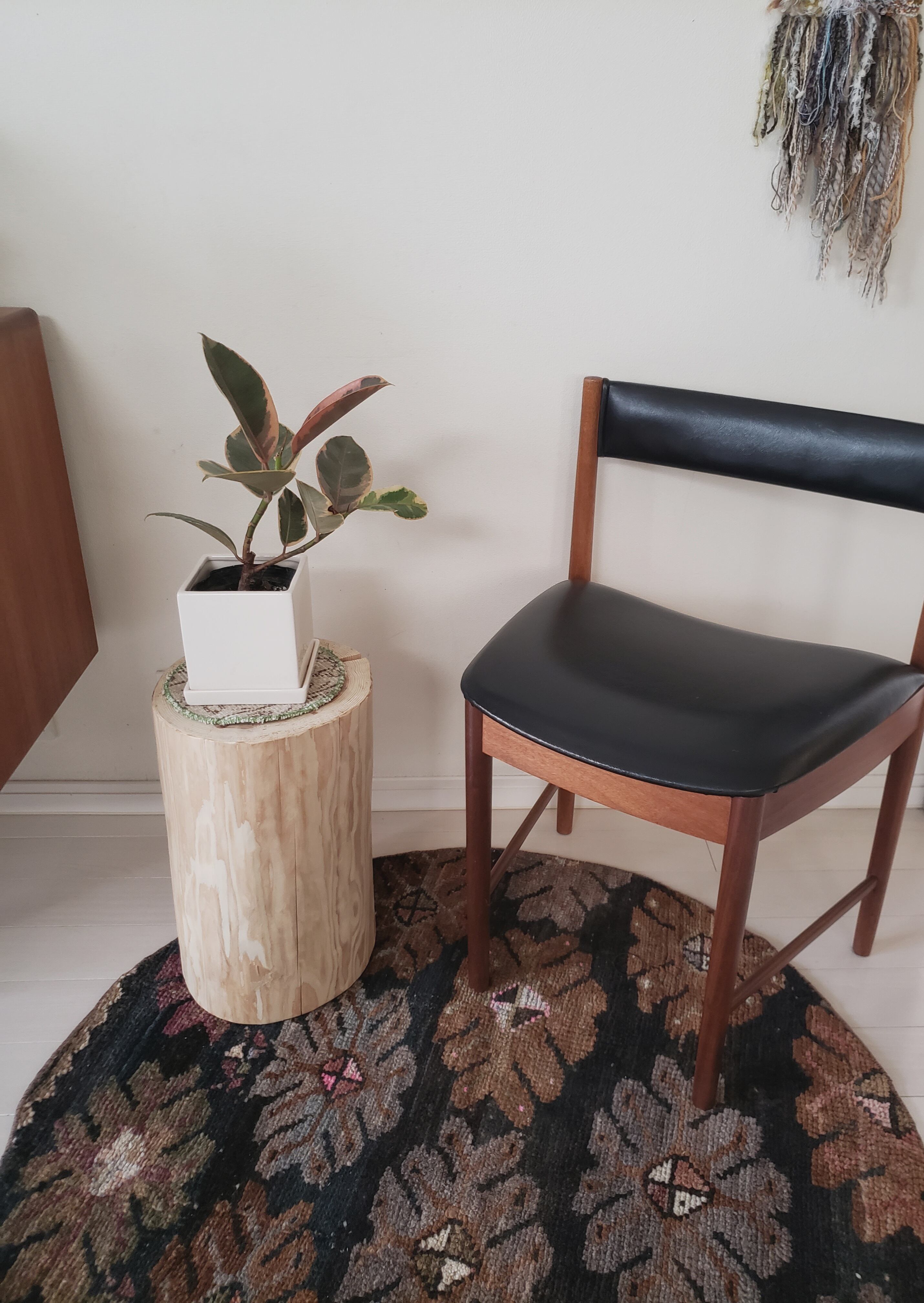 Round rug - black flower motif ヴィンテージラグ トルコラグ