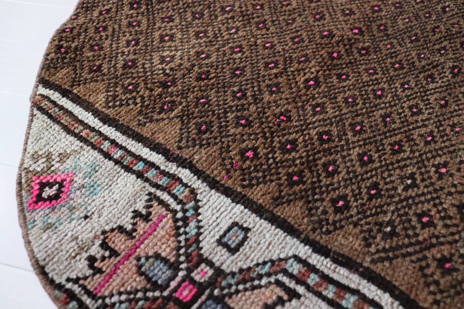 Round turkish rug -Brown pink ヴィンテージラグ ビンテージラグ