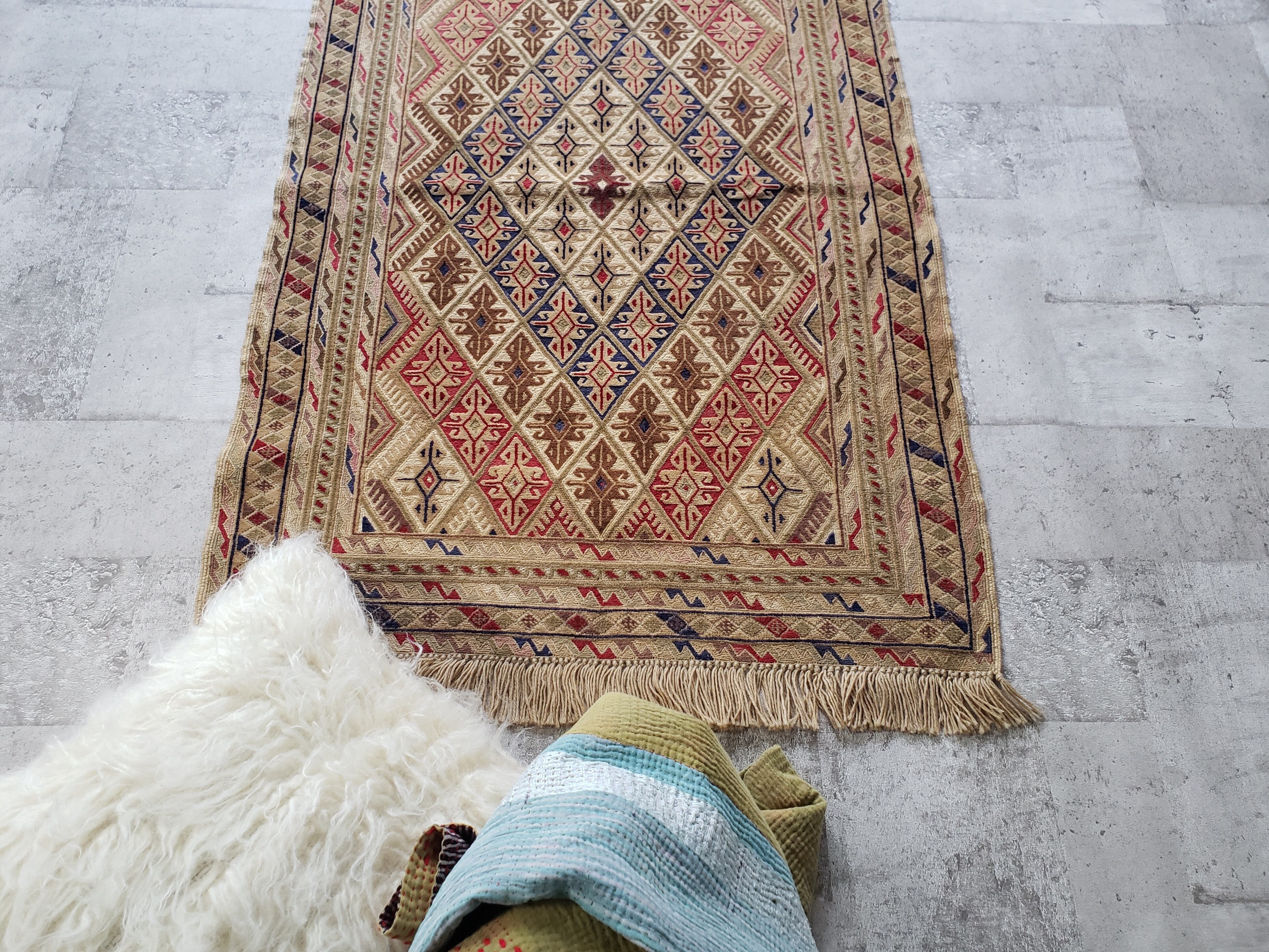 ・ヴィンテージラグにつき、使用感、ゆがみ、ほつれなど多少あります。ヴィンテージ商品にご理解ください。235