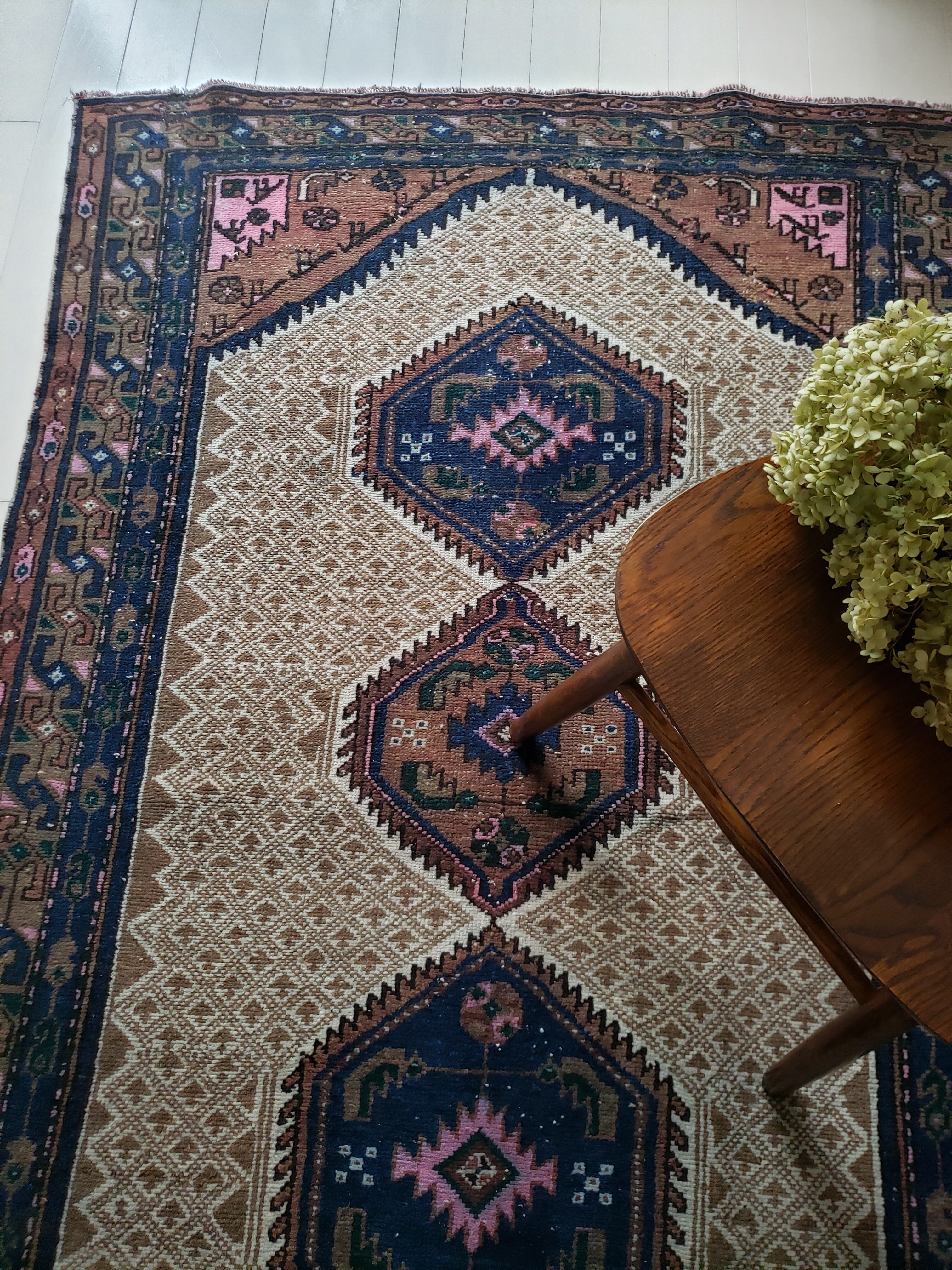 Turkish rug - Navy pink with animal ヴィンテージラグ