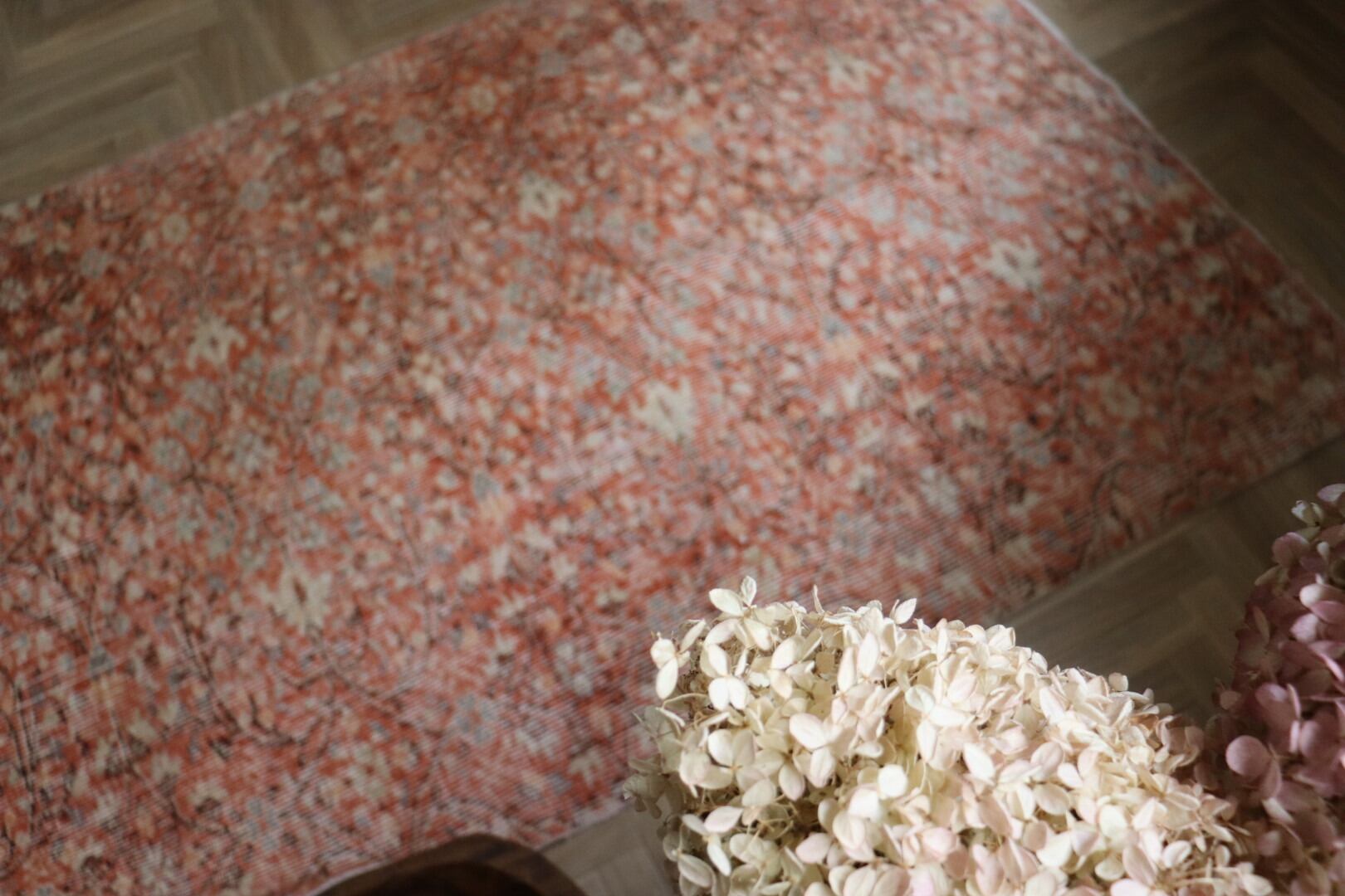 Turkish rug - Salmon orange botanical ヴィンテージラグ