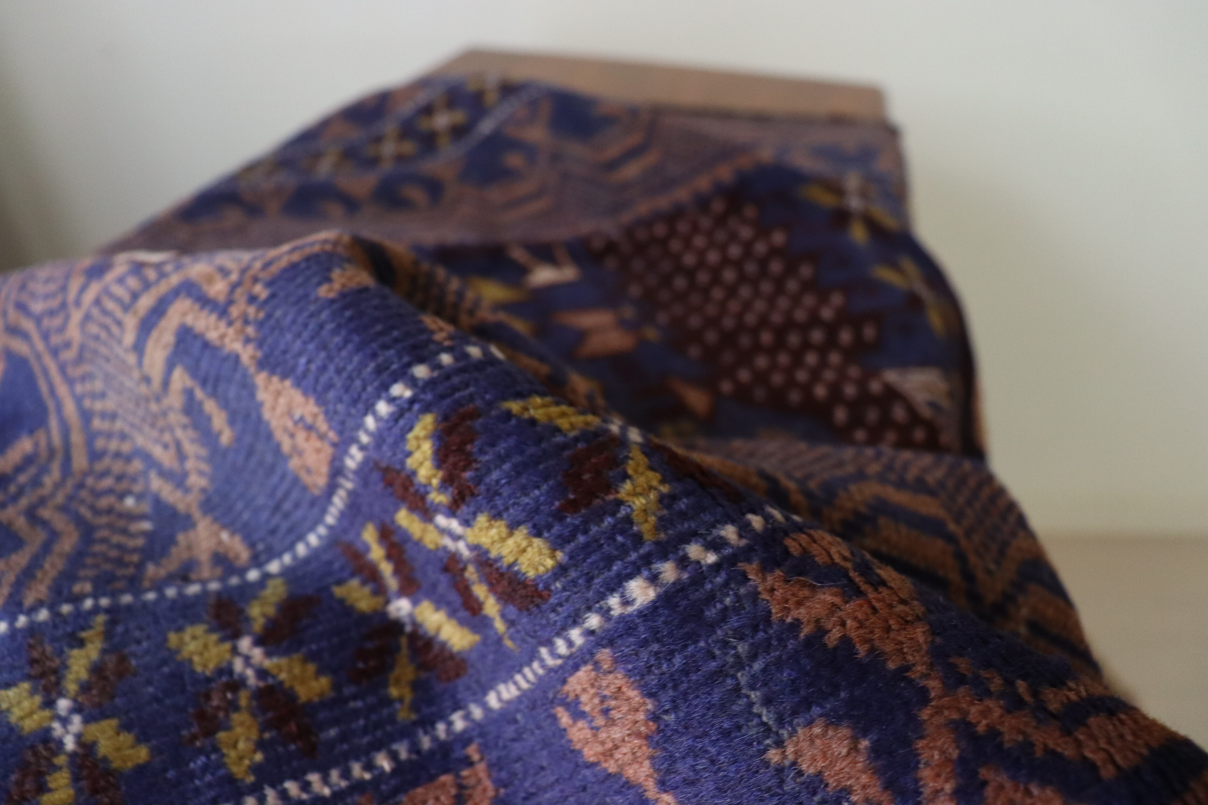 ・ヴィンテージラグにつき、使用感、ゆがみ、ほつれ、羊毛の抜け落ちなどあります。