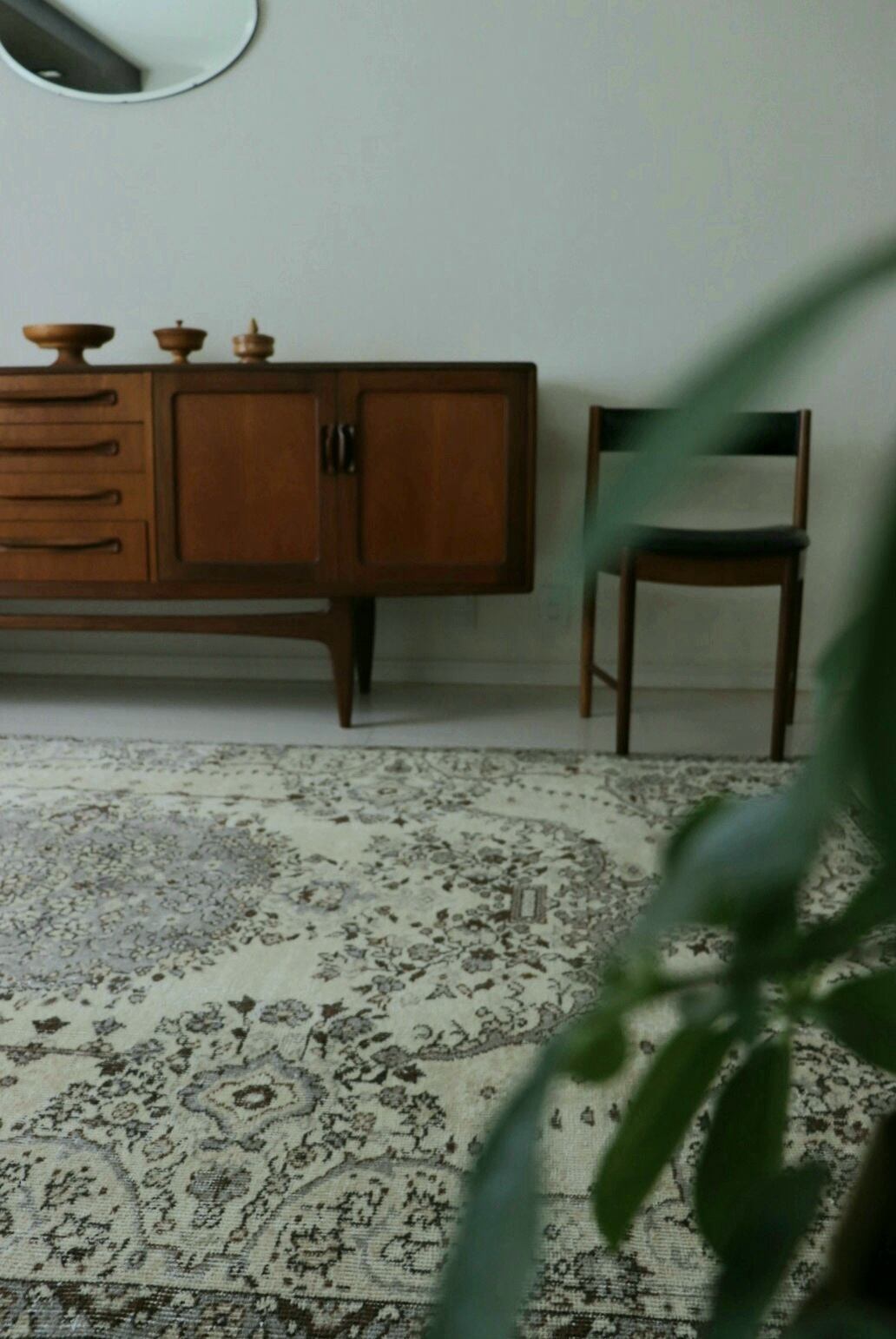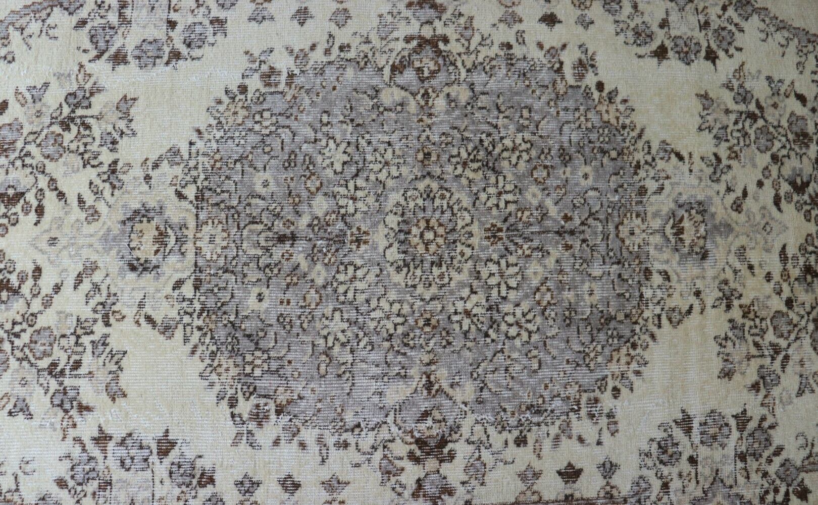 大判 Turkish rug - grey Beige 総柄 botanical ヴィンテージラグ トルコ絨毯
